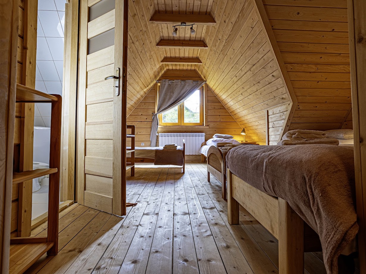 Wygodne łóżka, przestrzeń do wypoczynku i prywatność dla Gości.
